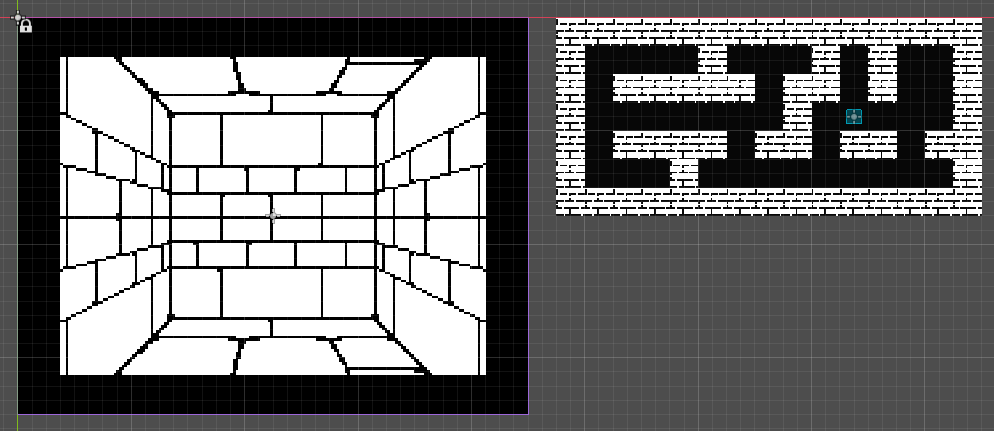 The first-person sprites are OptimusDu's modified assets, based on Clint Bellanger's First Person Dungeon Crawl Art Pack. The tile set for the map is by DENZI.